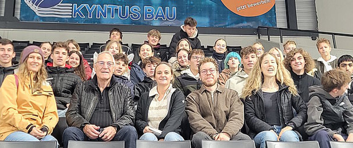 Führung der 10. Klassen durchs EVL-Stadion durch Eishockeylegende Alois Schloder