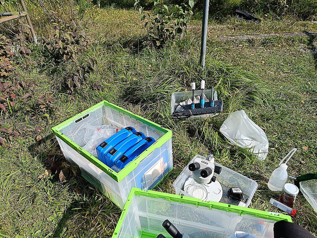 Vielen Dank an Frau Laufer, die vermutlich die gesamte Biologiesammlung der Schule in ihr Auto geladen hat, um uns bestmöglich auszustatten. So hatten wir die Möglichkeit, die Ökosysteme mit professionellen Mitteln zu erforschen.