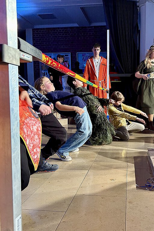 Nachdem die knapp 200 Schülerinnen und Schüler angekommen waren, sorgten die vier Tutorinnen und Tutoren mit einer Anmoderation und einer „Stimmungsrakete“ direkt für gute Laune.