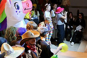 Das Highlight der Party war jedoch der Kostümwettbewerb: 30 nominierte Kinder präsentierten ihre Kostüme auf einem Laufsteg, während eine Jury aus vier Tutorinnen die Auftritte bewertete. Am Ende gewannen ein Pantomime, eine Barbie und ein NFL-Spieler.