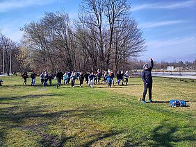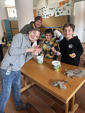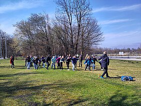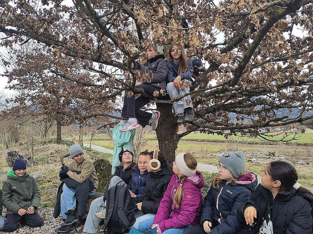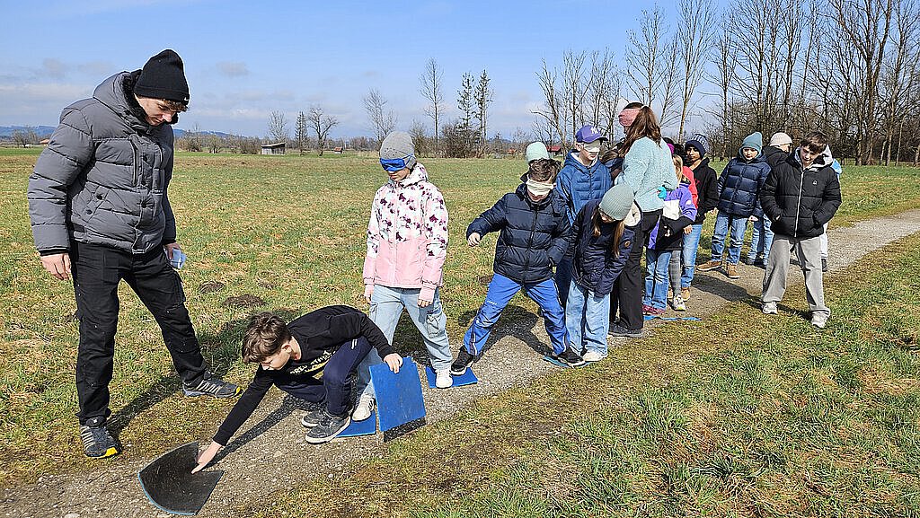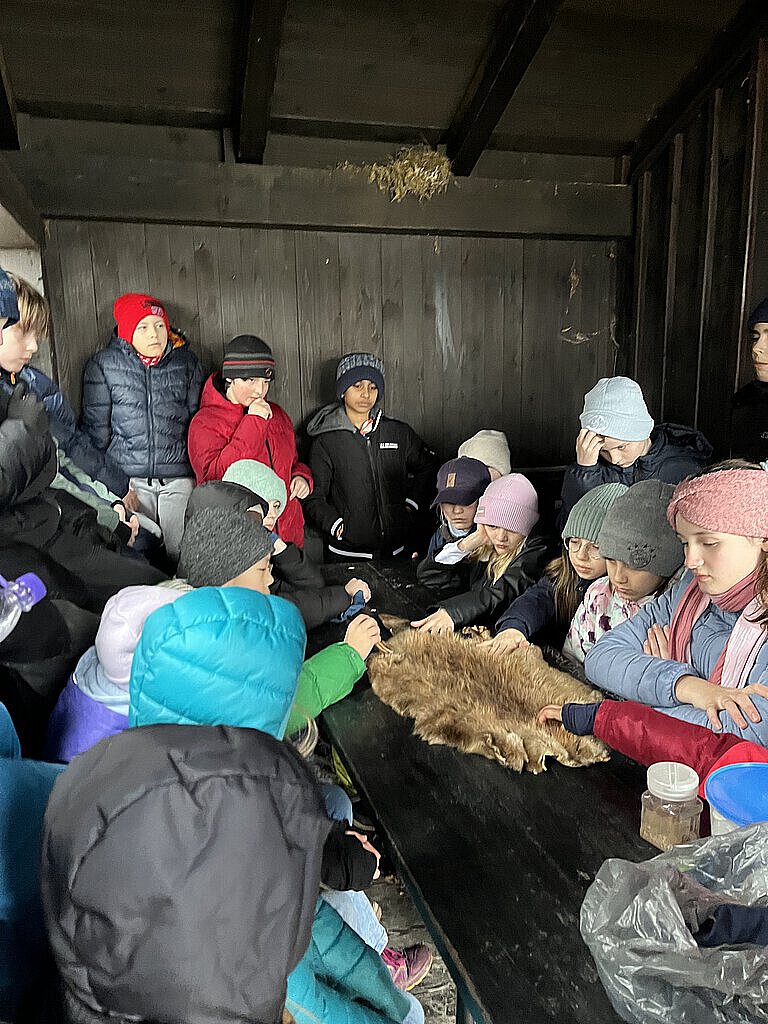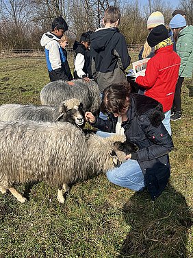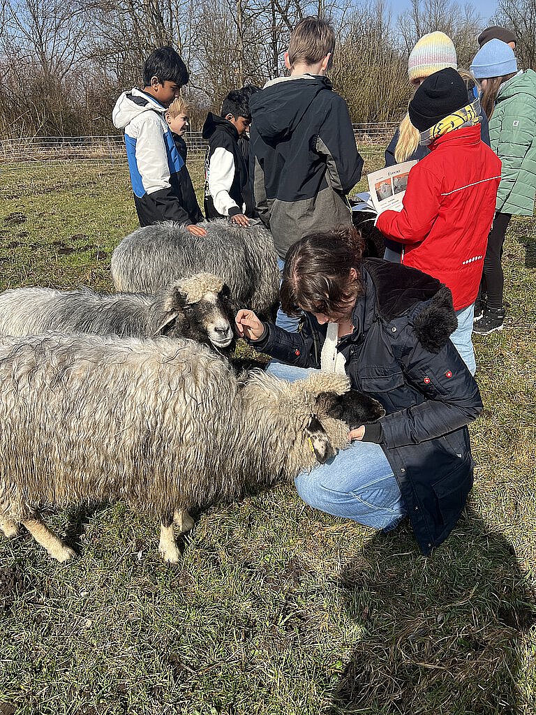 Nach dem Mittagessen ging das Programm direkt los. Jede Klasse durfte mit ihrem Guide, ihren zwei Lehrkräften und den zwei Klassentutorinnen losziehen. Beispielsweise wurde ein Tümpel mithilfe von Keschern erforscht, Schafe gestreichelt oder Spiele gespielt.