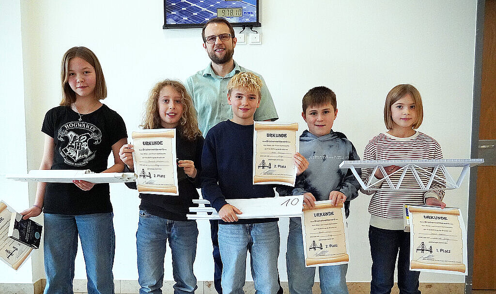 Die Last-Bridge-Standing gehörte Leonie Wiesner (5E), deren Konstruktion selbst unter einer unglaublichen Last von 20 kg noch immer hielt. Platz 2 ging an das Team „Crazy Bridges“ (5B) von Konsti Stangl, Anton Friedrich und Dominik Günthner, deren Papierbrücke bei einer Belastung von 20 kg schlussendlich zusammenbrach. Auch Johanna Sellmair (5C) konnte mit ihrer Brücke beeindrucken, die erst bei 12 kg Belastung einknickte und damit Rang 3 erreichte.