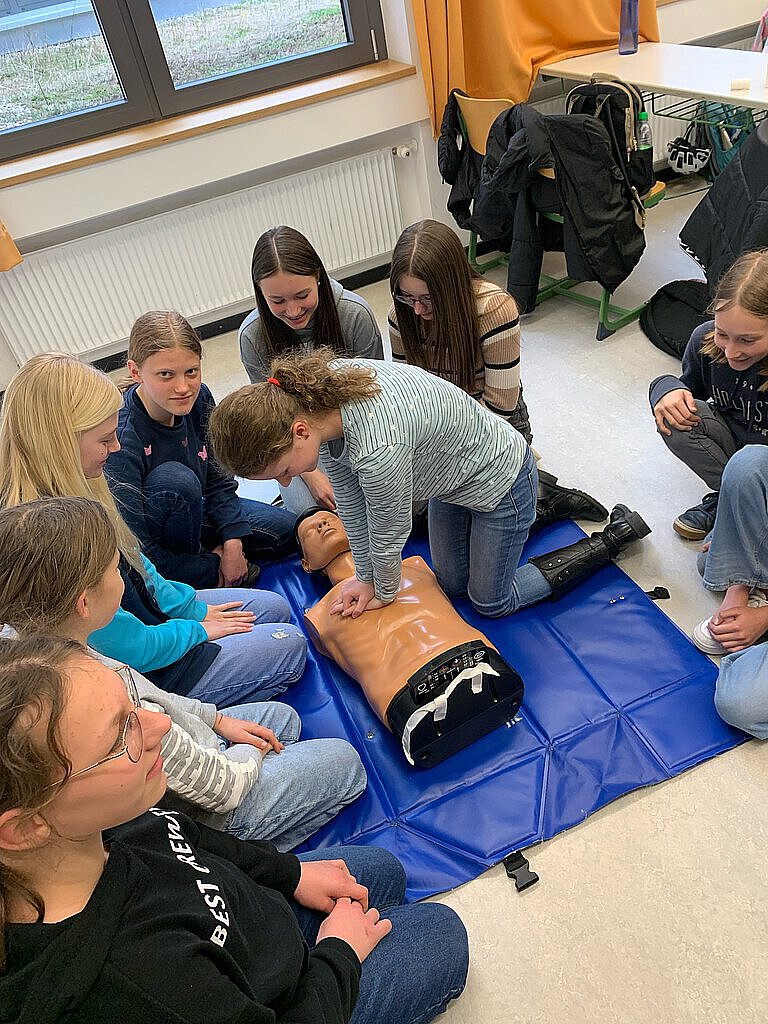 Dass für die 10. Klassen ein Erste-Hilfe-Kurs angeboten wird, ist seit einigen Jahren durch das schulinterne „Erste-Hilfe-Konzept“ am KRvFG gängige Praxis.