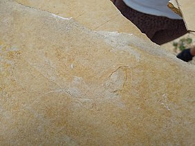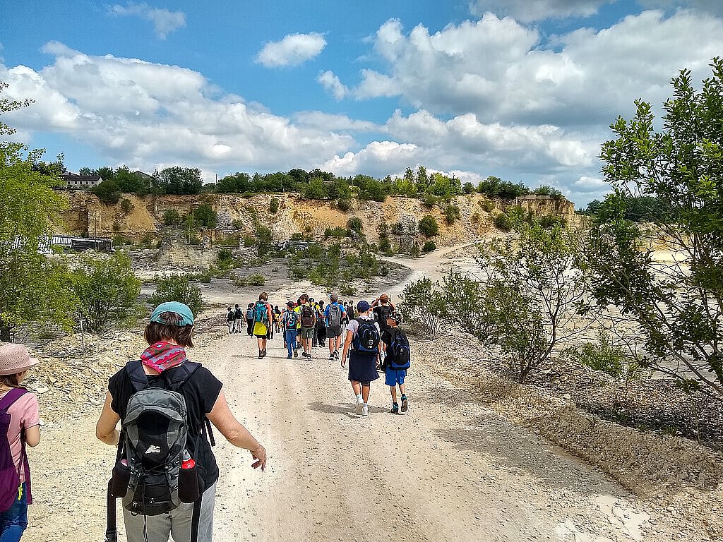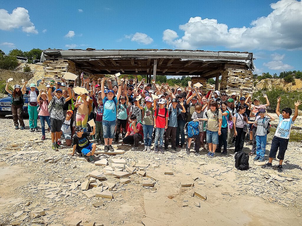 Hier arbeiteten die Kinder sich mit Hämmern und Meißeln Schicht für Schicht durch die Kalkschichten und damit die Erdgeschichte des Erdmittelalters. Es wurden zwei seltene versteinerte Fische und zahllose kleinere Versteinerungen wie z.B Seeanemonen, Ammoniten, versteinerter Seeigelkot, etc. gefunden. Die erfolgreichen Fossilienjäger konnten ihre Schätze stolz mit nach Hause nehmen.