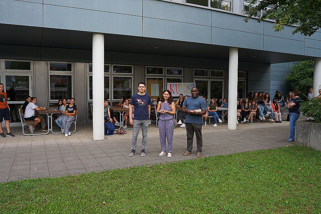 Wie auch in den letzten Jahren hat der Elternbeirat – vertreten durch Frau Monika Prote und Herrn Francois Boungouendji – im Beisein von Schulleiterin Claudia Theumer und Verbindungslehrer Andreas Reif Schüler*innen, die sich in diversen Wahlkursen engagiert und damit das Schulleben aktiv mitgestaltet haben, geehrt und sich bei ihnen hierfür in Form eines Eisgutscheines bedankt, welcher beim aktuell vorliegenden Sommerwetter wohl nicht allzu lange auf seine Einlösung warten müssen wird! :-)