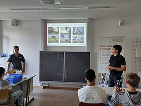 Zusätzlich gab es für die 9. Klassen noch den „Tag des Handwerks“: Tobias Hindemitt, Beratungslehrer des Gymnasiums, und Alexander Dietz von der Handwerkskammer München/Oberbayern informierten die Schülerinnen und Schüler über Wege ins Handwerk und über die Ausbildung. Anschließend besuchten die Schülerinnen und Schüler Workshops der Firmen Leitsch-Haus, Henning Sanitär und HAWE Hydraulik.