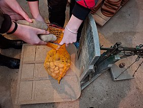 Außerdem durften sie beim Ackern, Abwiegen und Abfüllen von Kartoffeln und dem Aufstellen von Sitzstangen für Greifvögel selbst tätig werden.