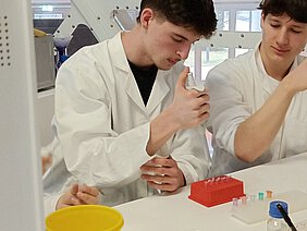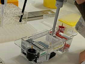 Im Anschluss stand das Laborieren im „DNA visitor´s lab“ auf dem Programm, mit dem Ziel, den Täter eines fiktiven Mordes zu überführen. Dazu wurden authentische DNA-Proben verschiedener Verdächtiger mittels PCR-Verfahren und Gelelektrophorese ausgewertet und auf Übereinstimmung mit Spuren am Tatort überprüft. Als hilfreich erwies sich das erstaunlich detaillierte Hintergrundwissen aus dem Unterricht, welches die biologischen Zusammenhänge hinter den Arbeitsschritten gut nachvollziehbar machte. Nach all der Präzisionsarbeit wurden die Teilnehmer fast ausnahmslos mit einem aussagekräftigen Ergebnis belohnt: Der Täter war überraschenderweise ein naher Familienangehöriger und nicht wie man vorschnell zu urteilen denkt, der Gärtner – ein weiteres eindrucksvolles Beispiel, wie die Wissenschaft dem Gefühl Fakten entgegenzusetzen weiß. Der Dank des Kurses gilt Frau Laufer, welche den bereichernden Ausflug mitsamt den wertvollen Laborerfahrungen organisierte und ermöglichte und uns somit einen wertvollen Einblick in die Rolle eines Forensikers gegeben hat.