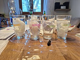 In der ersten Wettbewerbsphase standen Experimente rund um das Thema „Papier“ im Mittelpunkt. Die Teilnehmenden untersuchten verschiedene Papierarten hinsichtlich ihrer Oberflächenstruktur, Transparenz und Reißfestigkeit. Zudem testeten sie die Löslichkeit und Zersetzung unterschiedlicher Papierarten in Wasser über einen längeren Zeitraum. Ein weiteres Experiment beschäftigte sich mit dem Nachweis von Stärke in Papier, indem die jungen Forschenden eine chemische Reaktion mit einer Lugolscher Lösung durchführten. Diese anspruchsvollen Aufgaben erforderten genaues Beobachten, präzise Dokumentation und analytisches Denken – Fähigkeiten, die unsere Teilnehmenden hervorragend unter Beweis stellten.