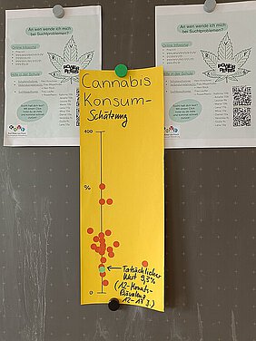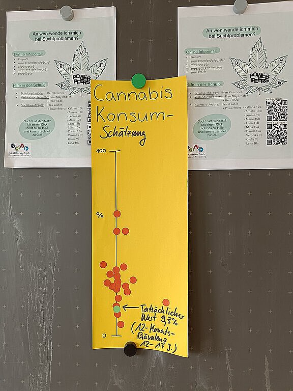 Frau Dietrich vom Gesundheitsamt informierte vor allem über körperliche und gesundheitliche Folgen des Cannabiskonsums. Bei den Power Peers ging es zunächst darum, dass die Schülerinnen und Schüler einmal einschätzen sollten, wie viele der zwölf bis 17-Jährigen denn schon einmal in den letzten zwölf Monaten Cannabis konsumiert haben könnten. Erfahrungsgemäß fällt die Schätzung deutlich höher aus als der tatsächliche Wert von circa 9 %. So wird bewusst gemacht, dass ein möglicher Gruppendruck relativ einfach entkräftet werden kann. Anschließend gab es mithilfe von Biografie-Karten die Möglichkeit, sich einmal zu überlegen, wie eine fiktive Persönlichkeit, in unserem Fall Marie und Paul, ihr Leben gestalten würde. Die Schülerinnen und Schüler entschieden in Bereichen wie Zukunft, Arbeitsleben, Liebe oder auch Konsumverhalten für die jeweiligen Personen und besprachen dann anschließend, welche Auswirkungen diese Entscheidungen auf das Leben haben könnte. Es wurde diskutiert, welche Risiko- und Schutzfaktoren ihre Wirkung entfalten könnten und ab wann die Person zum Beispiel für sich selbst Verantwortung übernehmen kann oder wo andere Personen zu wichtigen Entscheidungen beitragen. Zum Schluss ging es um Hilfsangebote für Betroffene und wie man damit am besten umgehen würde, wenn man bei Jemandem Anzeichen von Konsum bemerkte. Abschließend möchte ich mich gerne noch einmal bei allen Beteiligten für den sehr gelungenen Tag bedanken.
