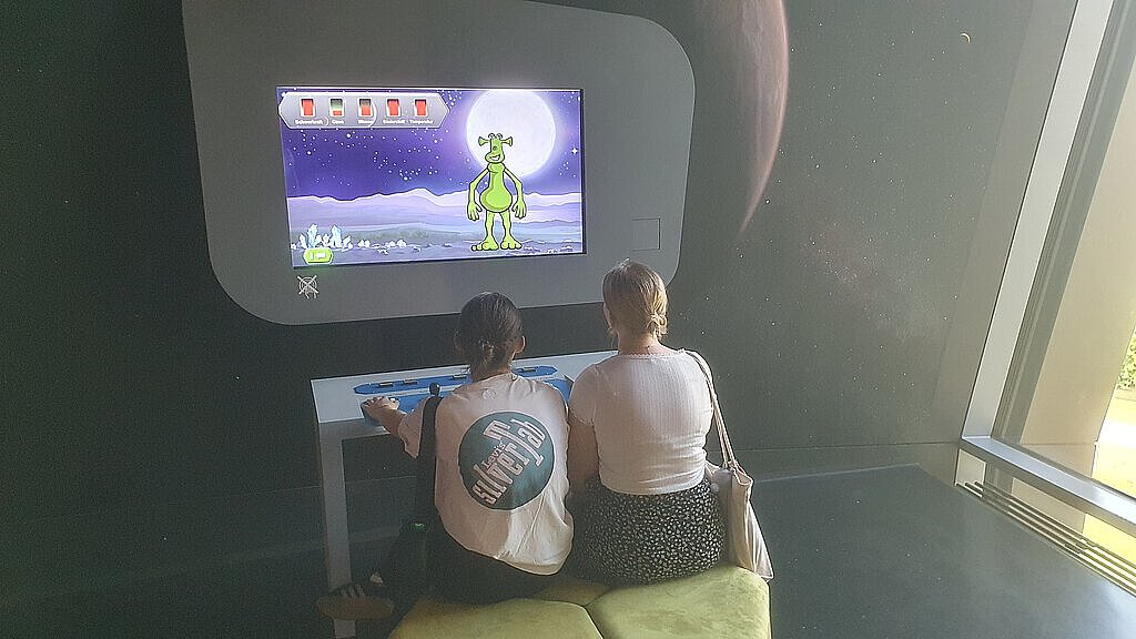 Die Schülerinnen und Schüler erkundeten zunächst die interaktive Ausstellung, die faszinierende Einblicke in die Welt der Astronomie und modernste Forschung bietet. Im Anschluss nahmen sie an einer einstündigen Planetariumsshow teil. Diese begann mit einer anschaulichen Erklärung des aktuellen Nachthimmels über Garching, inklusive sichtbarer Sternbilder, Planeten und astronomischer Besonderheiten. Im weiteren Verlauf widmete sich die Show eindrucksvoll dem unsichtbaren Universum, also Phänomenen wie Dunkler Materie, kosmischer Hintergrundstrahlung oder Schwarzen Löchern.