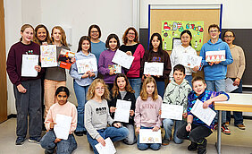 Die Kreativaufgabe bestand diesmal darin, ein römisches Gastmahl zu zeichnen, was viele Teilnehmer und Teilnehmerinnen aus den 6. und 7. Klassen mit Bravour meisterten. Außerdem ging es um Römerstraßen, das Bellgeräusch Latein sprechender Hunde (sie machen nämlich bau bau), die Symbole von Göttinnen und vieles mehr. Optime kannten sich auf all diesen Gebieten Ludwig Hartl aus der Klasse 7c, Luisa Lam (7d), Adriana Driescher (6b), Sarah Werkling (6c) und Anja Durakovic sowie Emilia Waibel aus der 6d aus. Aber auch alle anderen, die mitgemacht und bis zum Ende durchgehalten hatten, bekamen natürlich einen pretium.