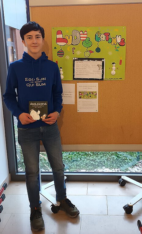 Zehn Jahre ist es her, dass wir mit unsrem lateinischen Adventsquiz angefangen haben, zehn mal zwölf Fragen wurden also im Lauf dieser Zeitspanne von Frau Hohe und Frau Erber erdacht. Ganz schön viel – und somit freuen wir uns besonders, dass wir heuer tatkräftig von Peter Heigl aus der 9d unterstützt wurden! Maximas gratias agimus!